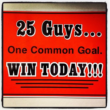 - #25GuysOneCommonGoal comes from the sign in the dugout before you walk onto the field which reads “25 Guys One Common Goal: Win Today” in all 90’s, cheesy MS-Word style and looks like this