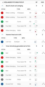 Verlander fought with a diverse array and in the fifth gave up a base on an HBP amidst the shifting command. Still, he fought with command and not over reliance on the fast ball: