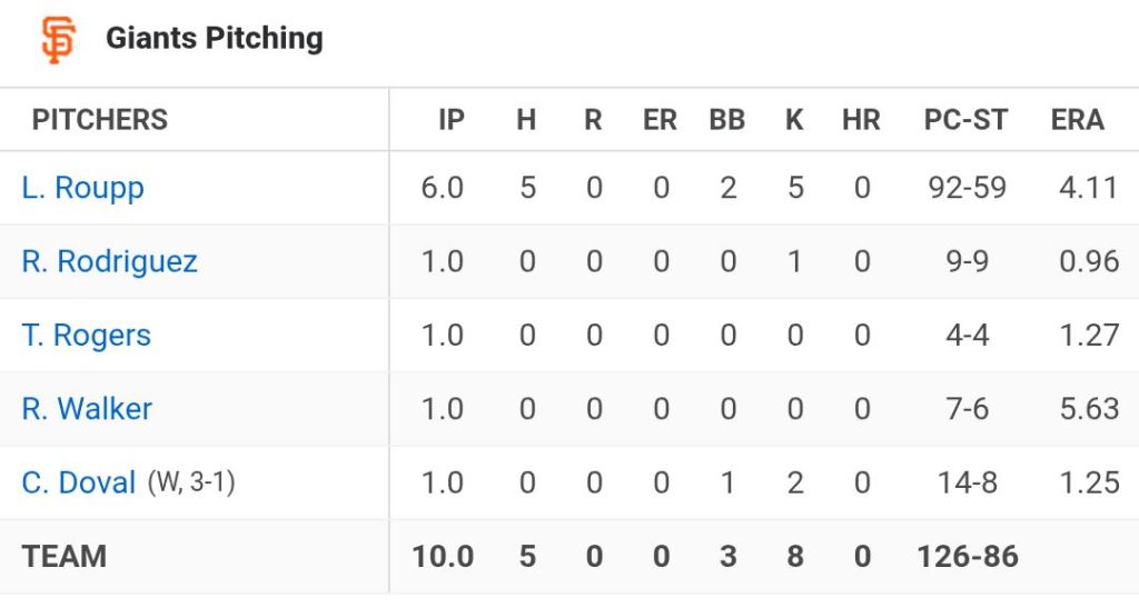 Logan Webb hasn’t shown his usual dominance, but the Giants made sure he didn’t need to in game one by continuing to put runners in scoring position for the right guys. Wilmer Flores was two-for-three with RISP, Adames two-for-two. Flores had a career-high eight RBI to extend his lead league to 41.